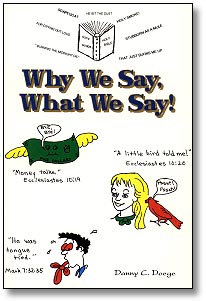 1,611 Bible Reasons forWhy We Say,What We Say!By Danny C. DoegeA Soul Winner's handbook of 1,611 often heard conversational phrases and sayings. These expressions come directly from the Bible and can be used to initiate an 'ON THE SPOT WITNESS' for the Lord Jesus Christ. This book can be used anytime, anywhere, with almost anyone, and gives the reader the ability to show the individual why he says what he says and where in the Bible he has said it from. This book is written in the same order as the Holy Bible (Genesis - Revelation), and because of that, it seemed impossible to place a standard contents page in it that would have helped you find the sayings on a per page basis (it would have had 66 chapters). This book is written for the honor and glory of the Lord Jesus Christ without whom nothing would be written by anyone, anywhere, ever. Colossians 1:16,17 |